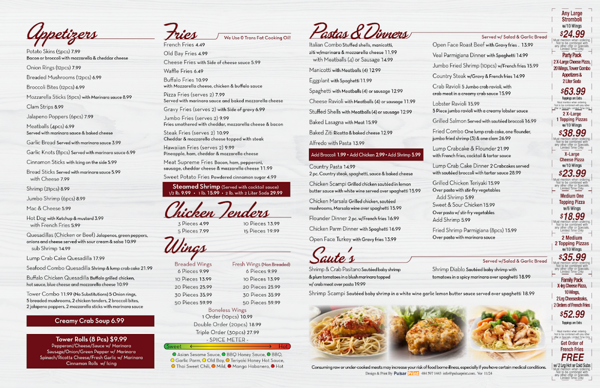 5 Onion rings, 5 breaded mushrooms, 2 chicken tenders, 2 broccoli bites, 2 jalapeno poppers, 2 mozzarella sticks with marinara sauce (No Substitutions)